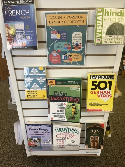 December is Learn a Language Month. The Quincy Public Library has a display up with a smattering of materials that we have on site. If you aren't finding what we have there, feel free to check out the stacks! We have books in children, teen, & adults - all with the call number of 400 & all there to help you out with your language skills!