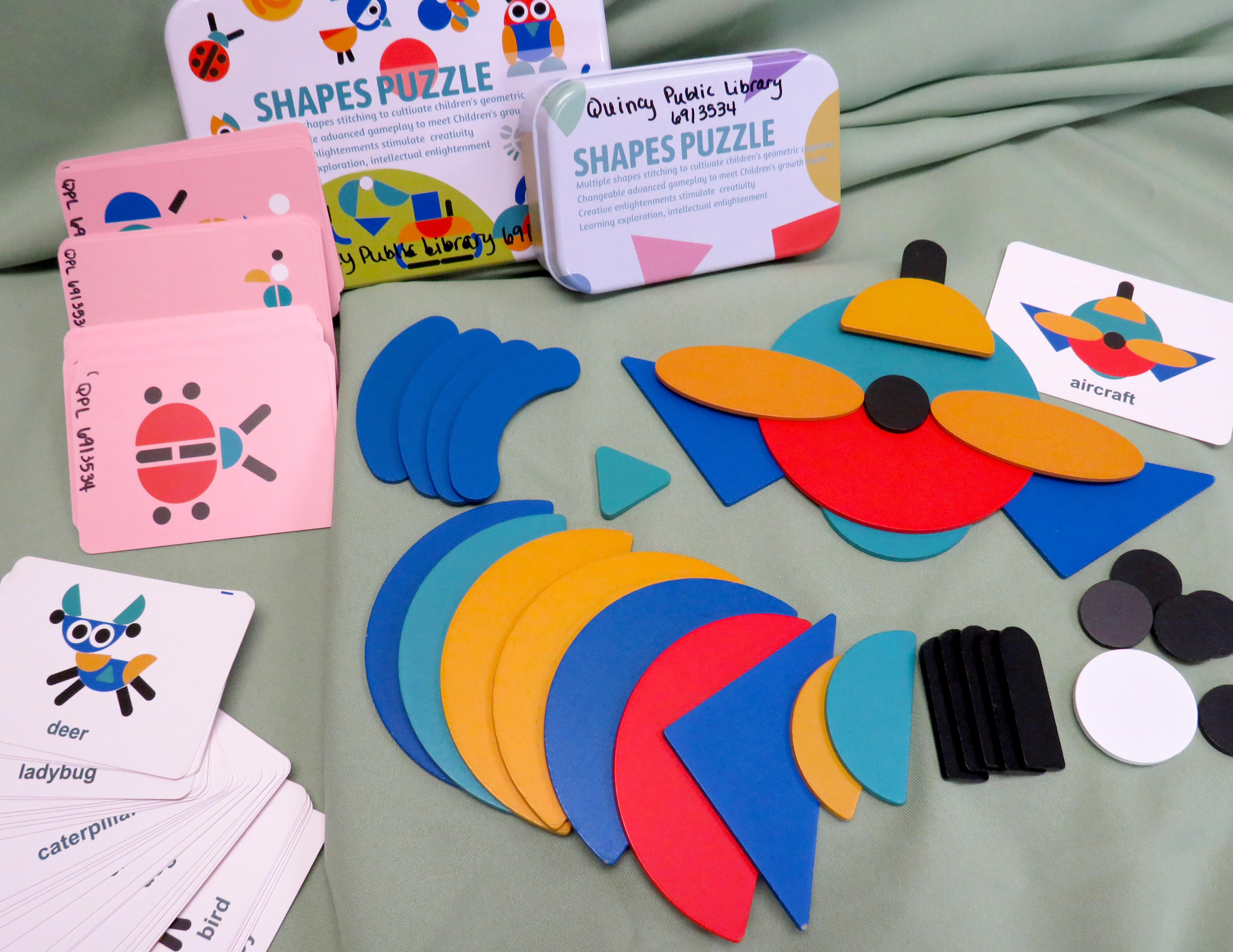 Brightly colored shapes with fun and imaginative patterns to replicate. Having just a few pieces makes it easy for kids to choose the right piece to complete the design.
